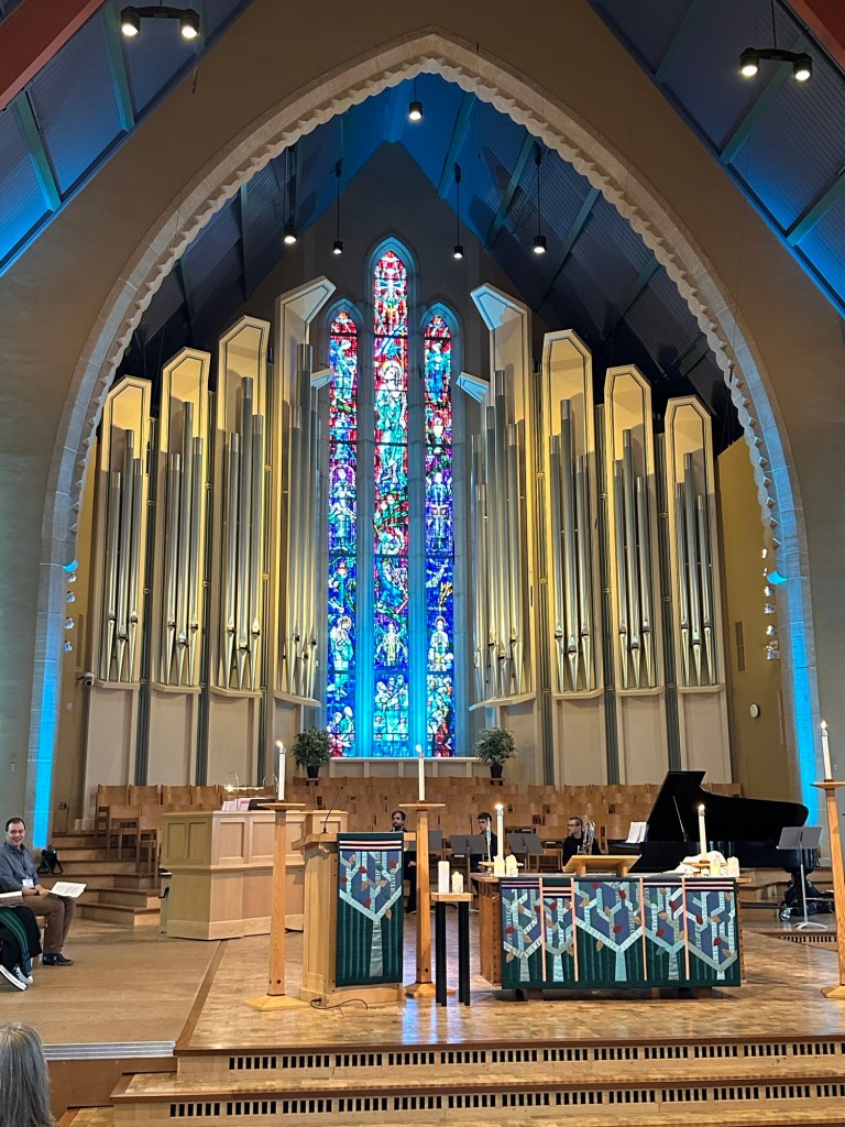 I had the privilege to attend St. Olaf’s Conference on Worship, Theology and the Arts earlier this week. The event began with worship on campus in Boe Chapel. I sat towards the front with a friend from my congregation and our pastor. When the organist began playing and attendees began singing, I couldn’t believe my ears. “How many people came in behind us?” I asked. The acoustics in the chapel are like nothing I had heard before. I am not a signer, but as I belted out the words to every song, I felt like I was part of a heavenly choir. If you ever get to St. Olaf College, make sure you participate in worship. Boe Chapel is truly a little piece of heaven on earth. It is glorious!